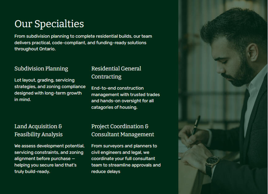 From subdivision planning to complete residential builds, our team delivers practical, code-compliant, and funding-ready solutions throughout Ontario.